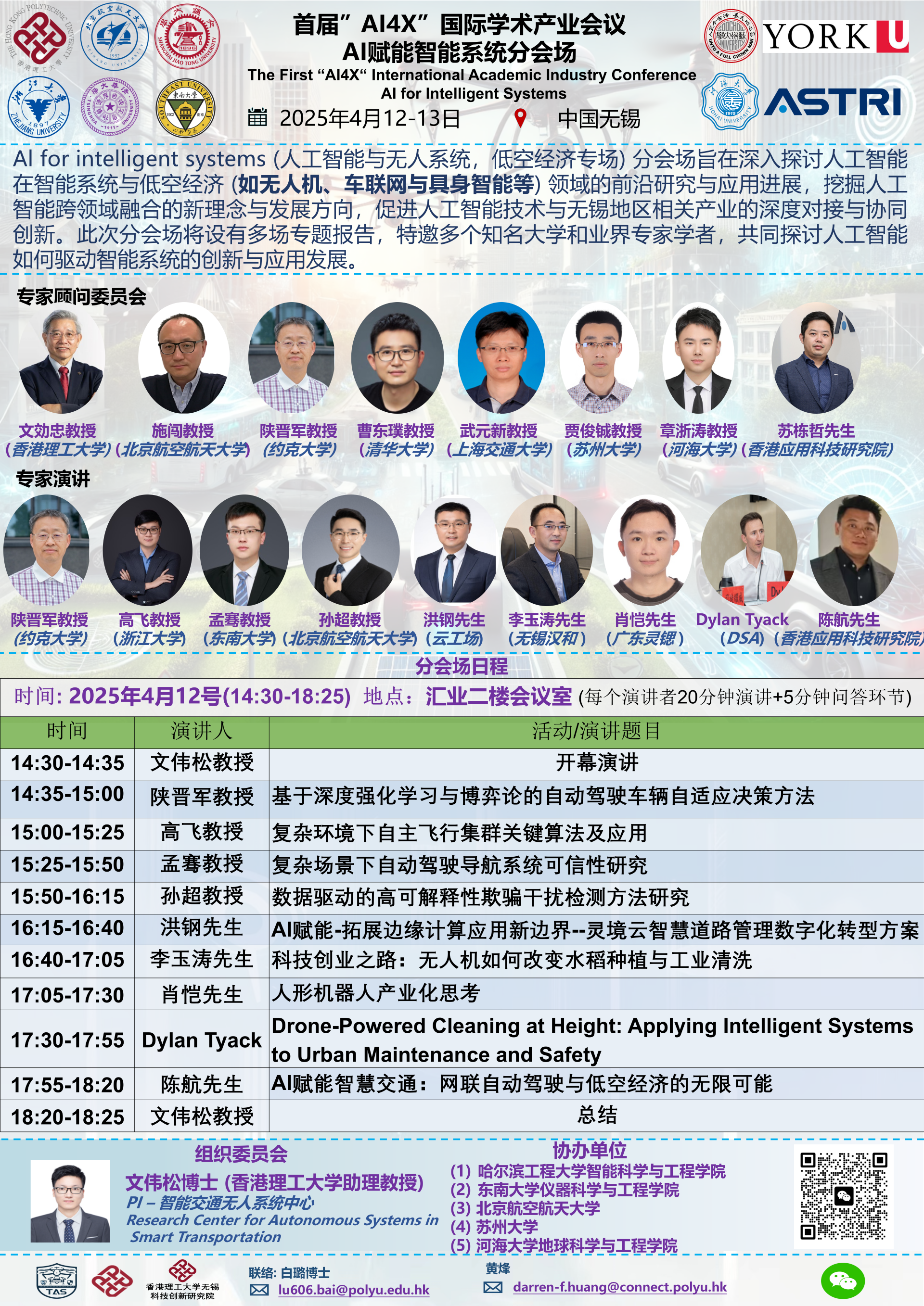 The inaugural “AI4X” International Academic and Industry Conference in Wuxi featured a dedicated sub-forum on AI-powered intelligent systems and the low-altitude economy, drawing experts from academia and industry to explore cutting-edge innovations in autonomous vehicles, drones, and embodied intelligence. The forum attracted high engagement: physical attendance exceeded capacity, and over 2,300 tuned in online, with strong viewership from young and urban audiences. You can find the detailed poster in here